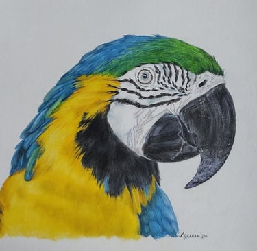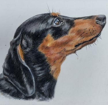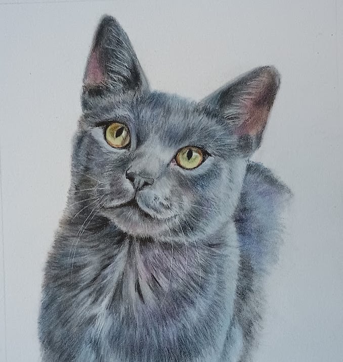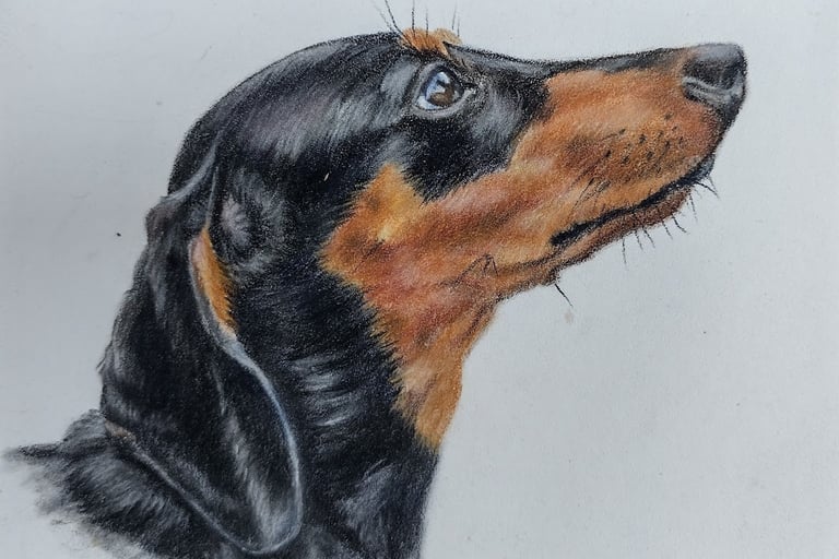 I started using coloured pencils in early 2024 after becoming frustrated with my own personal techniques when using watercolour to complete a pet portrait. I felt I was rushing sometimes to complete the painting so decided to move to coloured pencils. Coloured pencils seemed to me to be an ideal 'antidote' to working quickly or rushing, and I am using them to slow myself down a little, and to work in a much more measured and considerate way, to achieve the result that I am after. Even though my work portrays detail and realism, I am happy that the workings of my hand and my own artistic expression can sometimes show through and be visible to the viewer in the final piece.